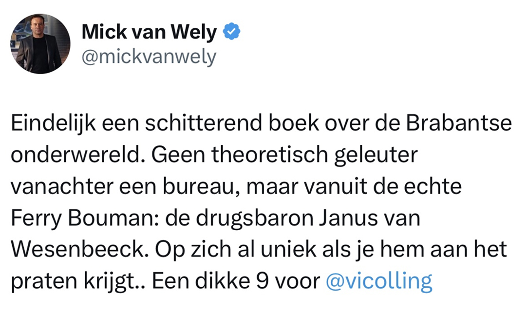 ‘Geweldig boek dat, in tegenstelling tot vele andere misdaadboeken, echt veel nieuwe info bevat doordat met vele bekenden die dicht bij Hillis stonden is gesproken. Hier is echt een paar jaar aan gewerkt. Ook nog eens vlot geschreven dus overtreft de verwachtingen!